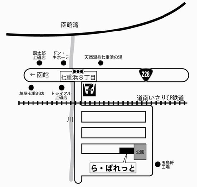 「函館 天然温泉 七重浜の湯」(旧 スパビーチ)のすぐ向い側です。